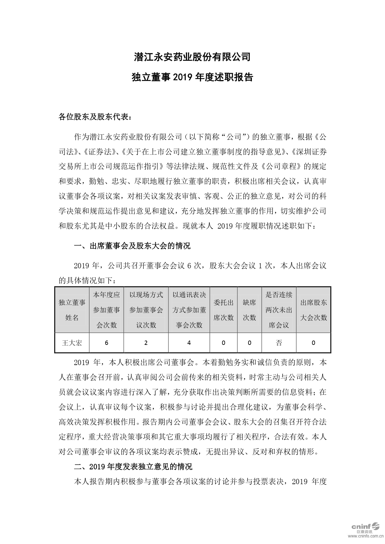 獨(dú)立董事2019年度述職報(bào)告(王大宏)