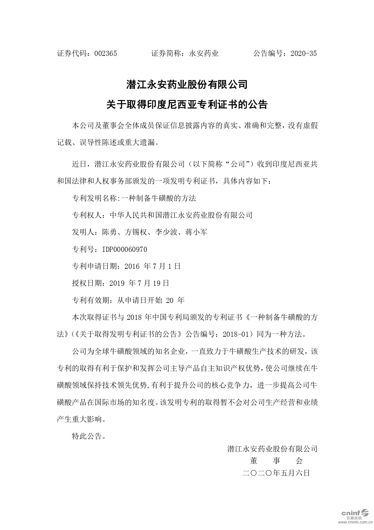 關于取得印度尼西亞專利證書的公告