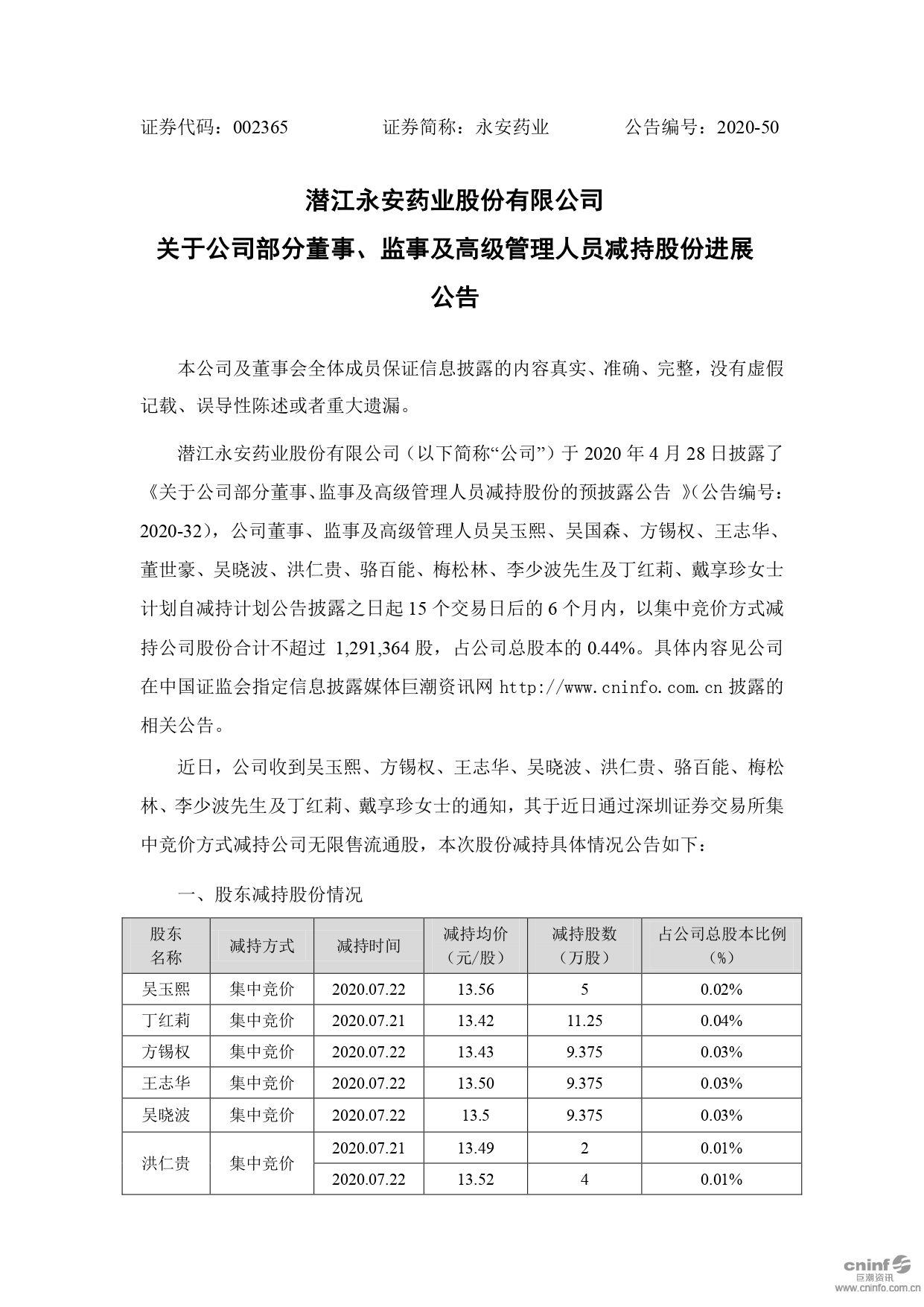 關(guān)于公司部分董事、監(jiān)事及高級(jí)管理人員減持股份進(jìn)展公告