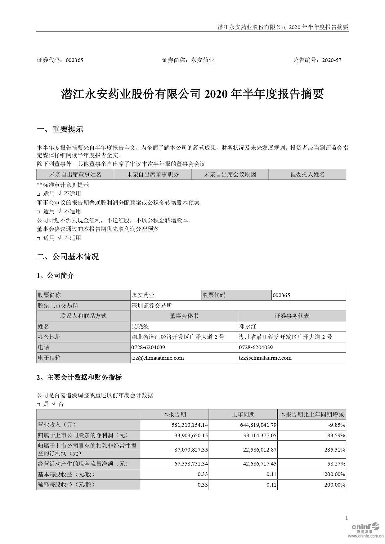 2020年半年度報(bào)告摘要