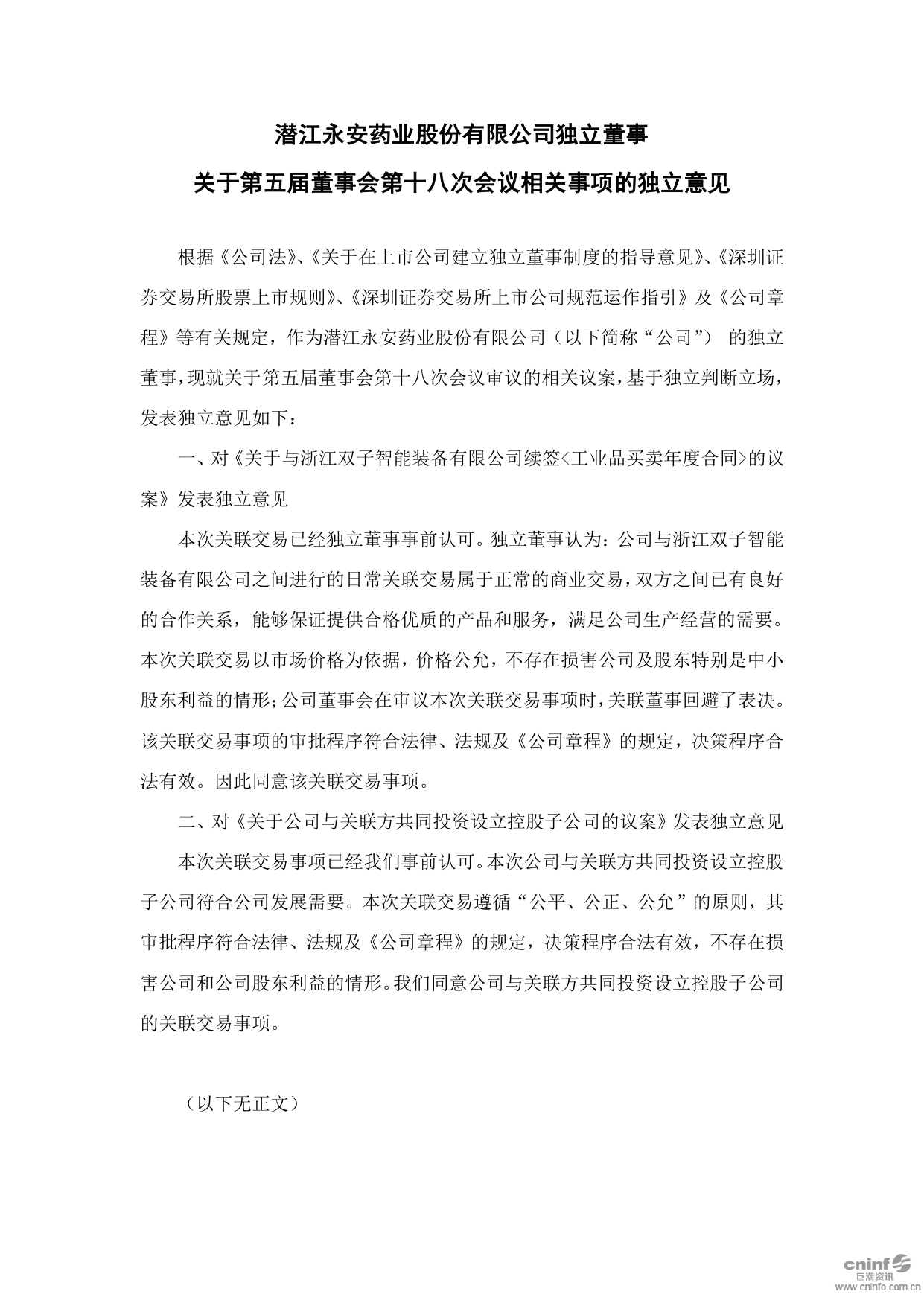 獨(dú)立董事關(guān)于第五屆董事會第十八次會議相關(guān)事項(xiàng)的獨(dú)立意見